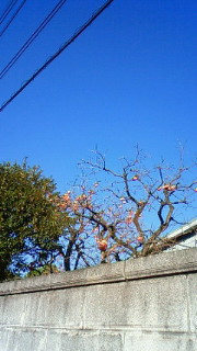 付近の家の庭の柿の木が