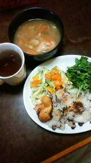 味噌汁は鍋の残り物。