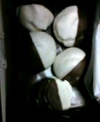 ホワイトチョコと、フツーのミルクチョコが塗られとる。