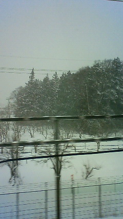 雪山を望みながらの新幹線、です。